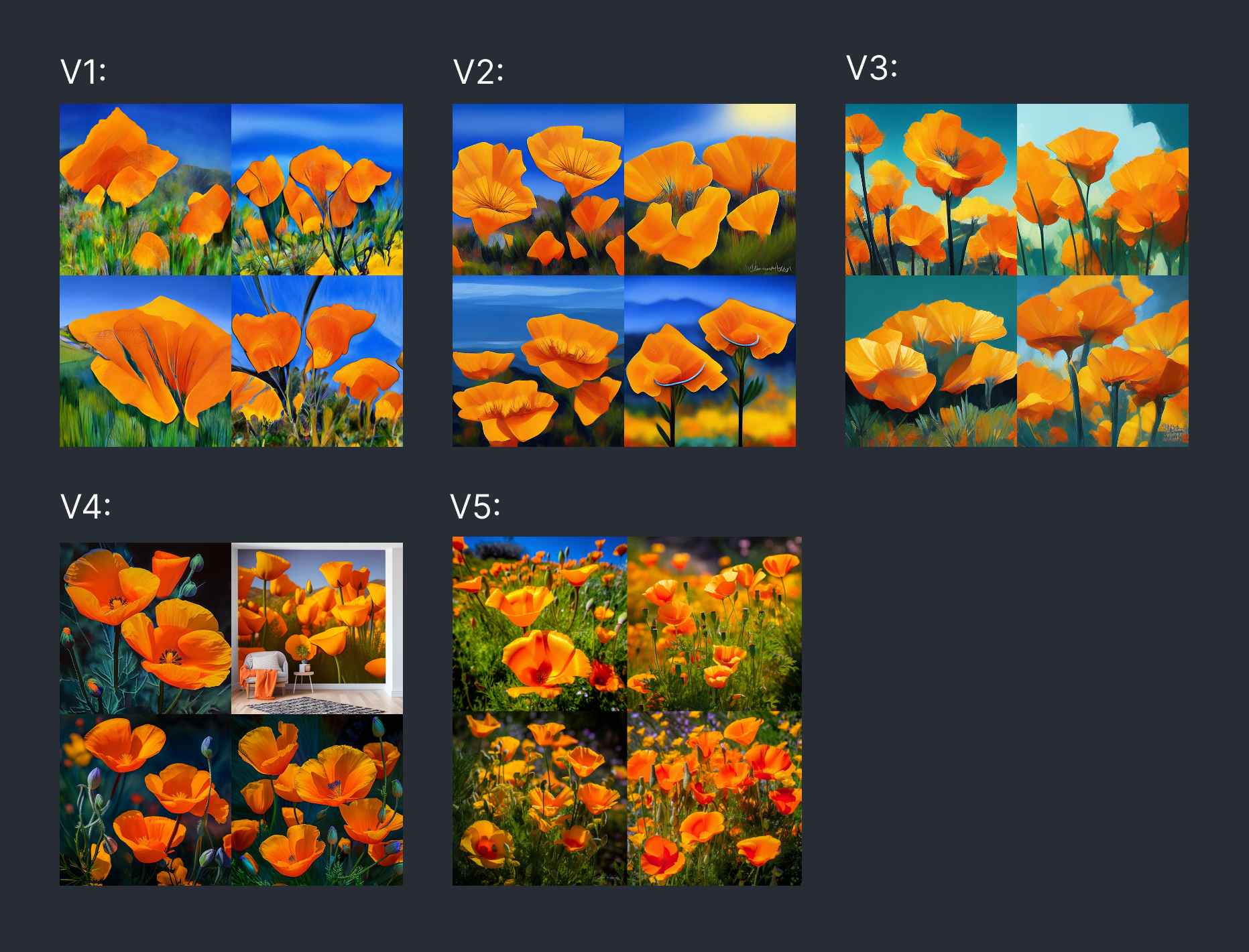 vibrant california poppies --v 5versions are only supported for 1, 2, 3, 4, 5