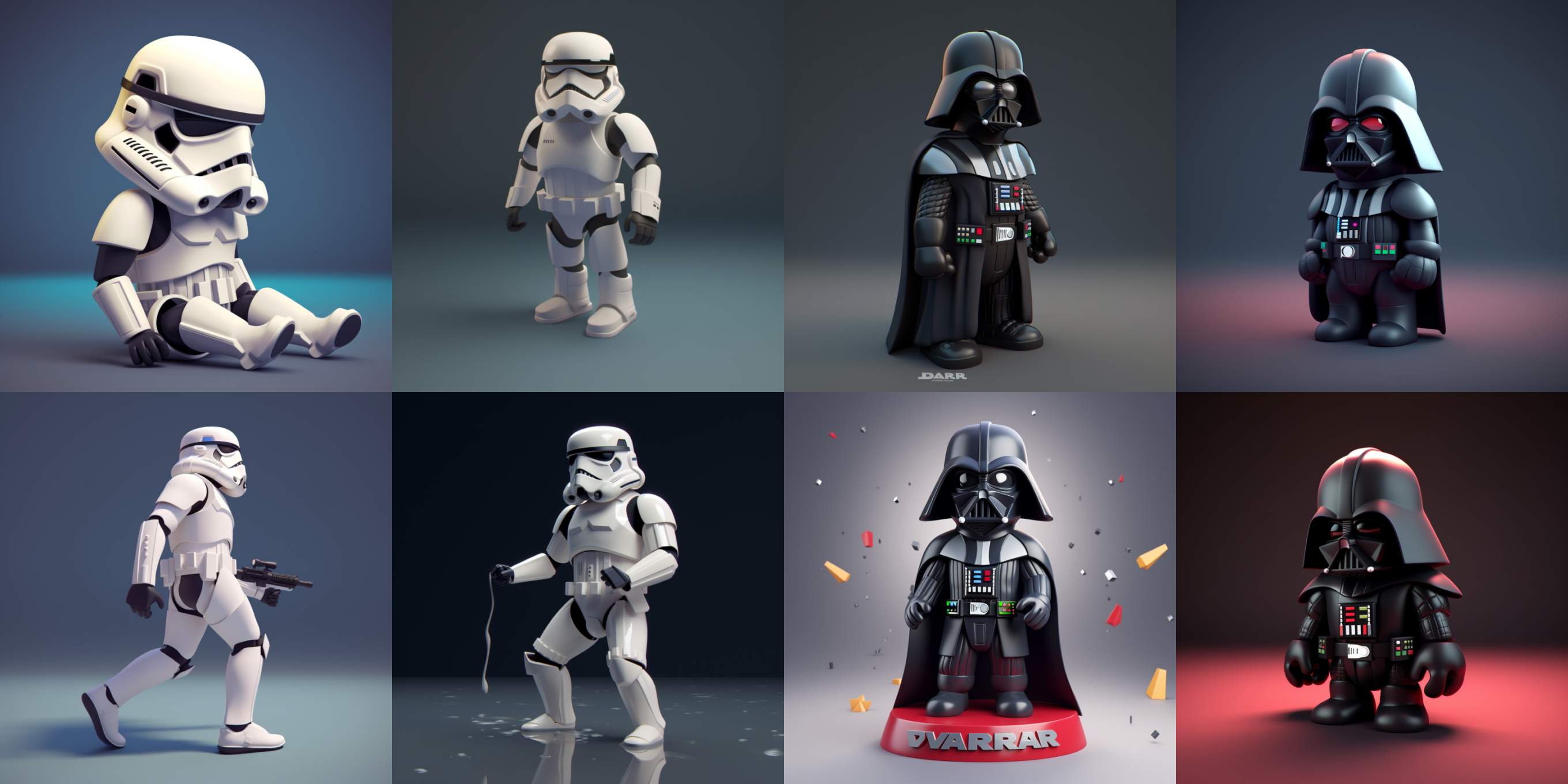 I used the above prompt to generate Darth Vader and Stormtroopers. I think the Stormtroopers are quite cute.