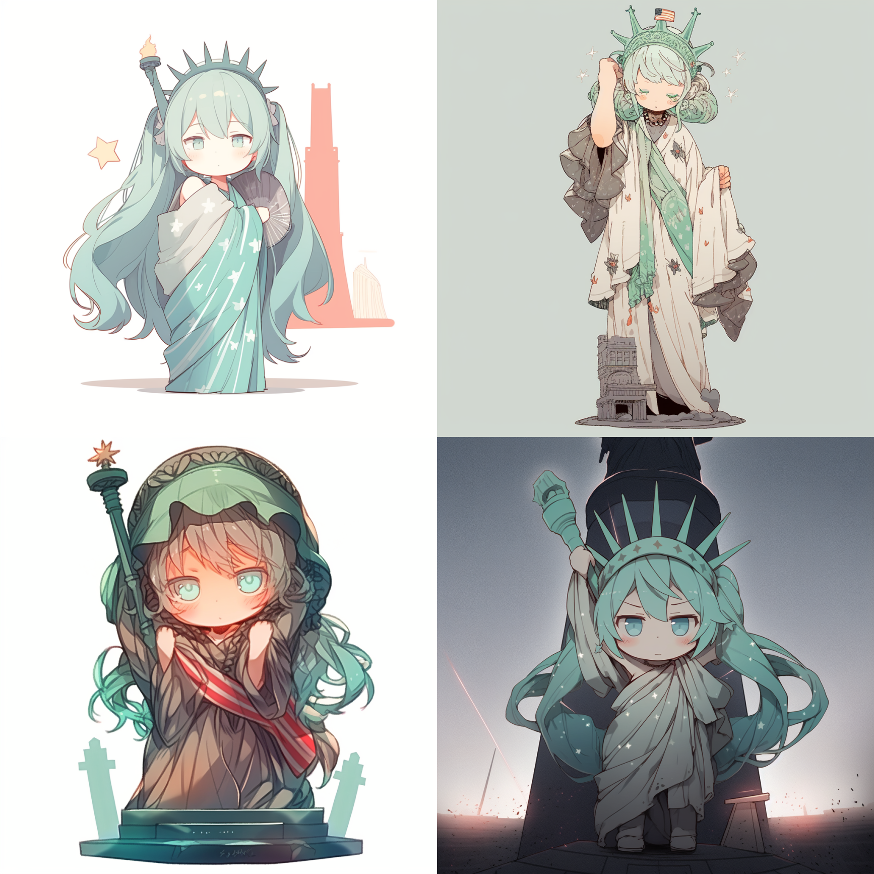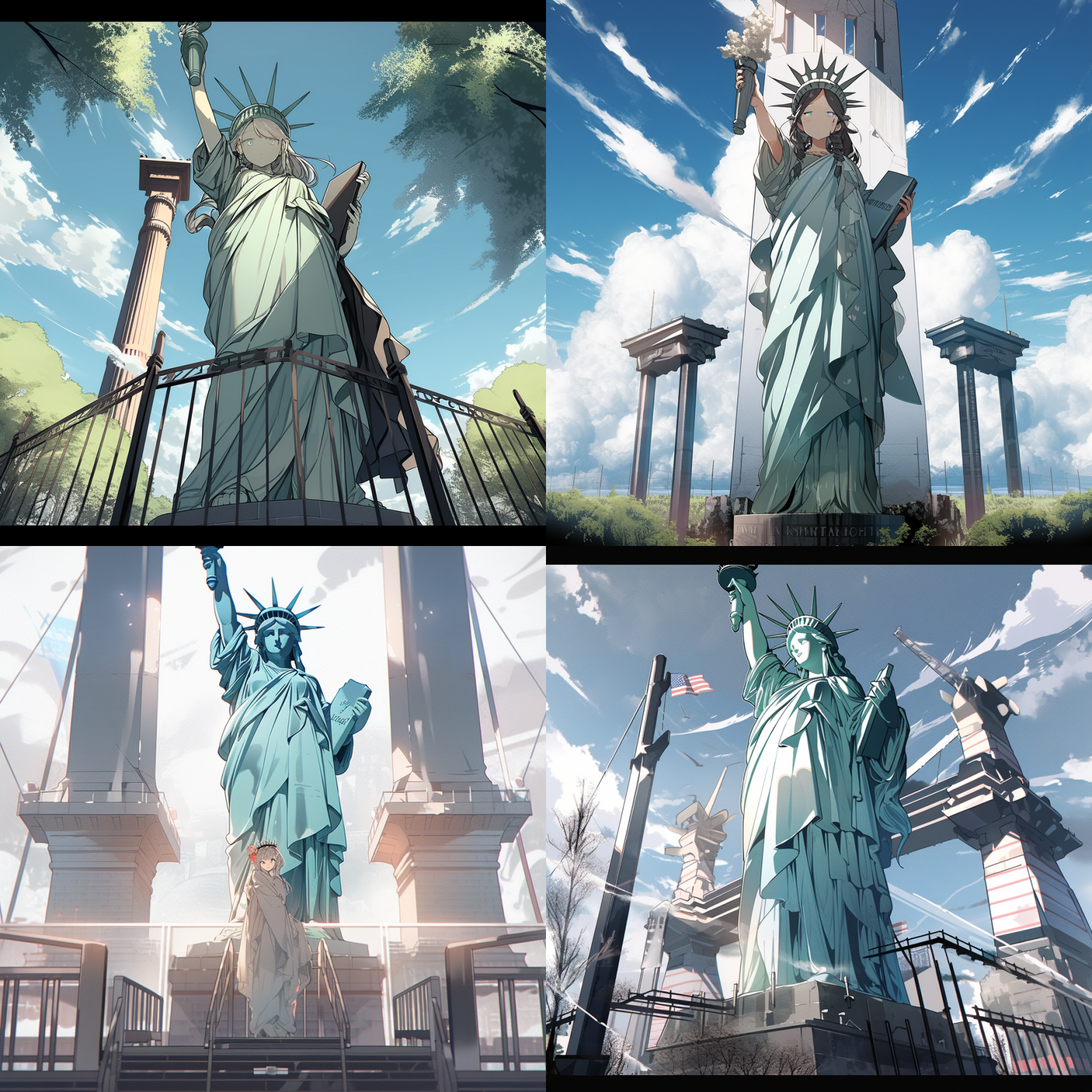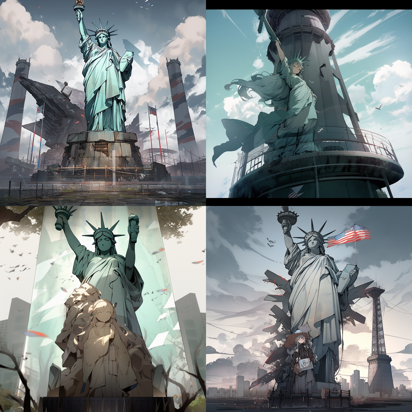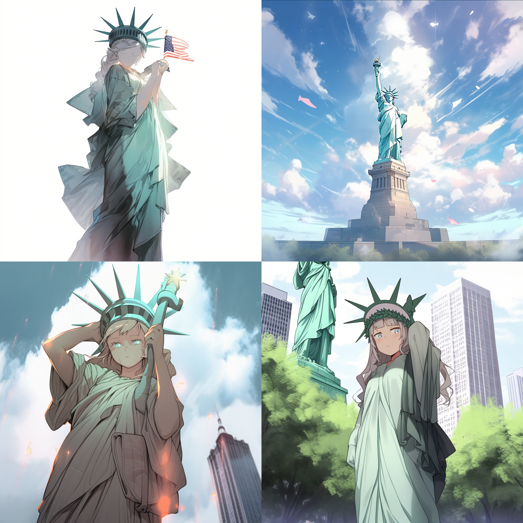 Here are just a few styles that I think are pretty good and well-supported by the model (with Statue Of Liberty as the main subject in each prompt)