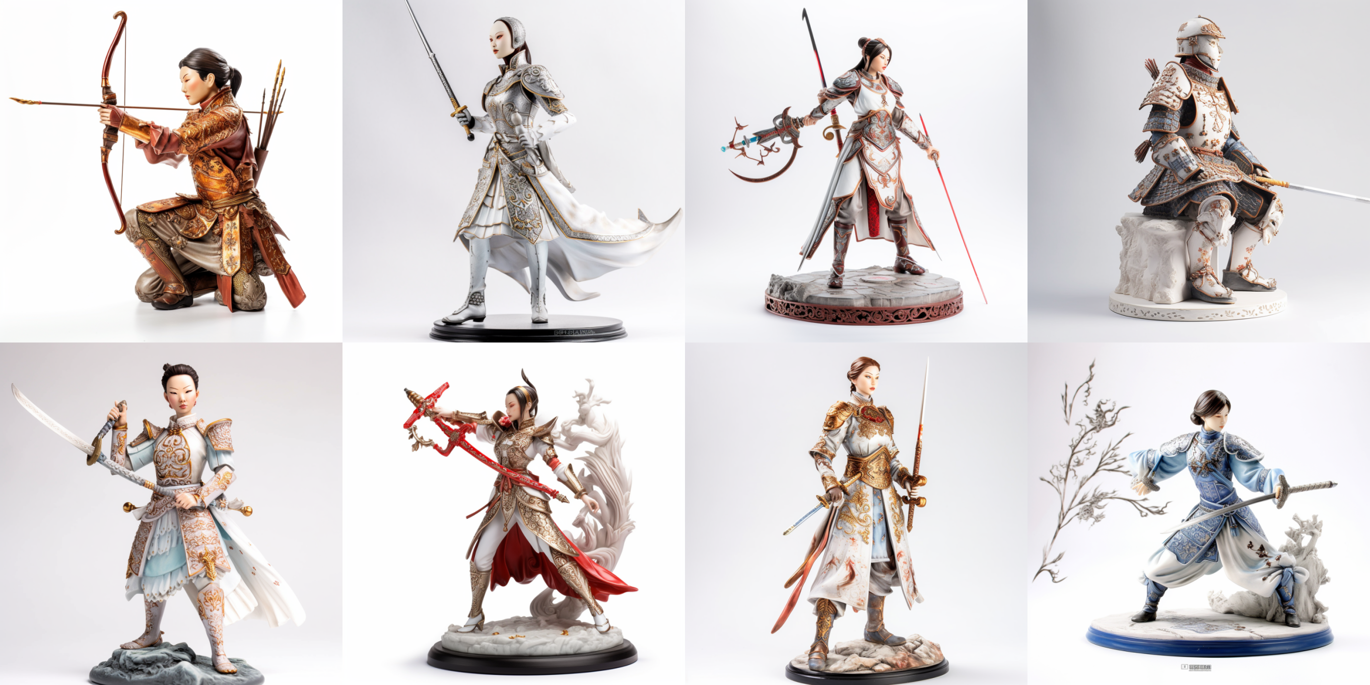 product photography, Chinese Style,Joan of Arc, full body, hand painted, plastic, detailed, white background, studio lighting